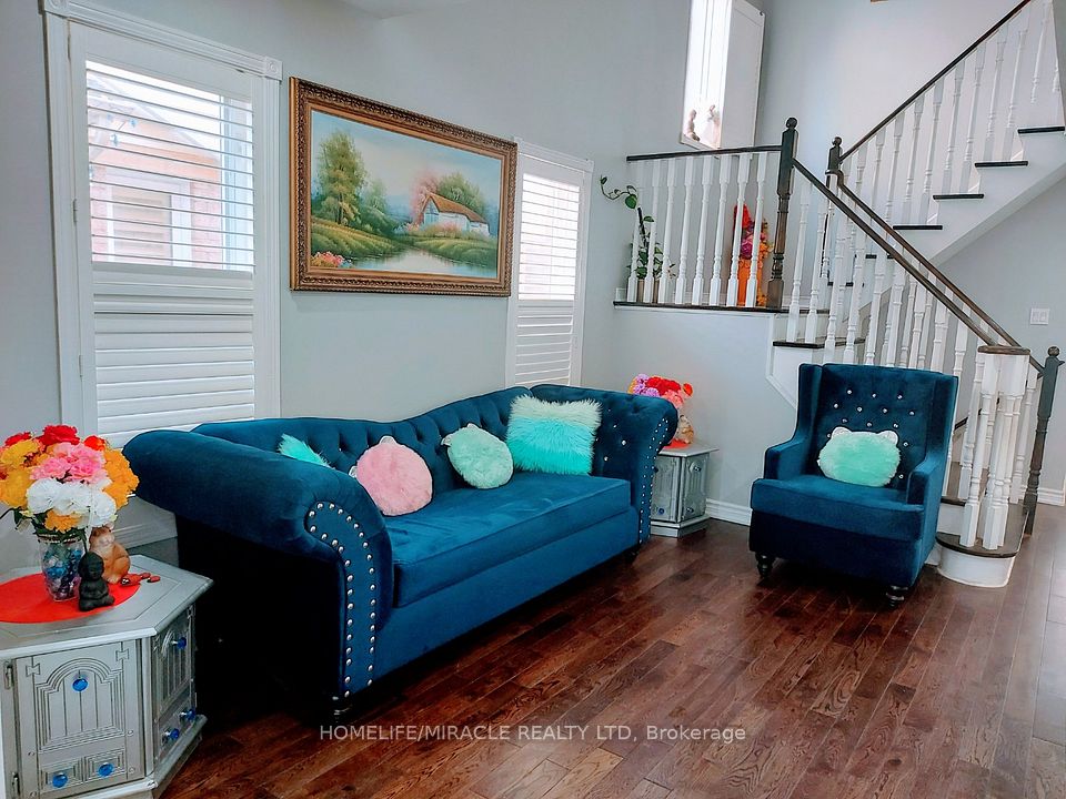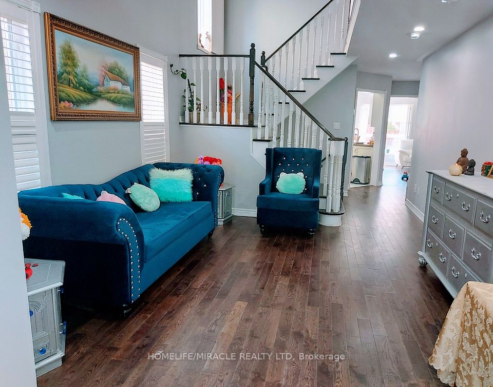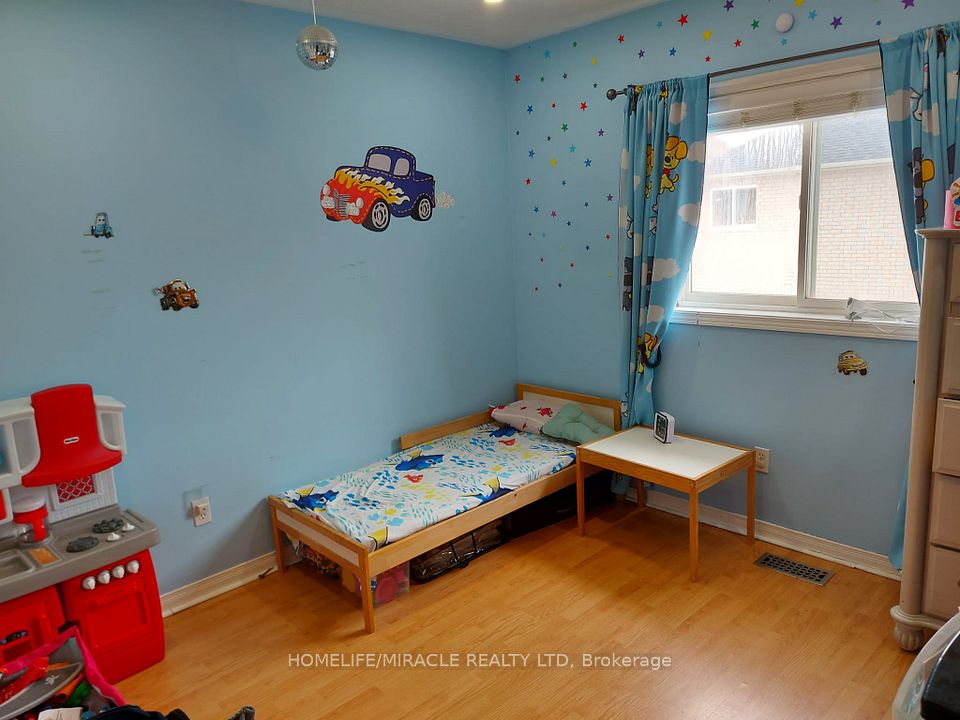 Experience luxury living in this stunning 4-bedroom detached home, perfectly situated in a prime neighborhood. This residence boasts a breathtaking open-concept layout, featuring a living room open-to-above and a cozy family room with a gas fireplace. The heart of the home is a modern kitchen complete with a gas stove, quartz countertops, stainless steel appliances, and a stylish backsplash. Enjoy the elegance of hardwood and laminate flooring throughout, complemented by California shutters. For ultimate convenience, the laundry is located on the second floor. Exterior features include a driveway with no sidewalk, offering ample parking. Ideally located steps from the Cassie Campbell Community Centre, transit, and local plazas. Note: Tenant responsible for 70% of utilities and Hot Water Tank rental.